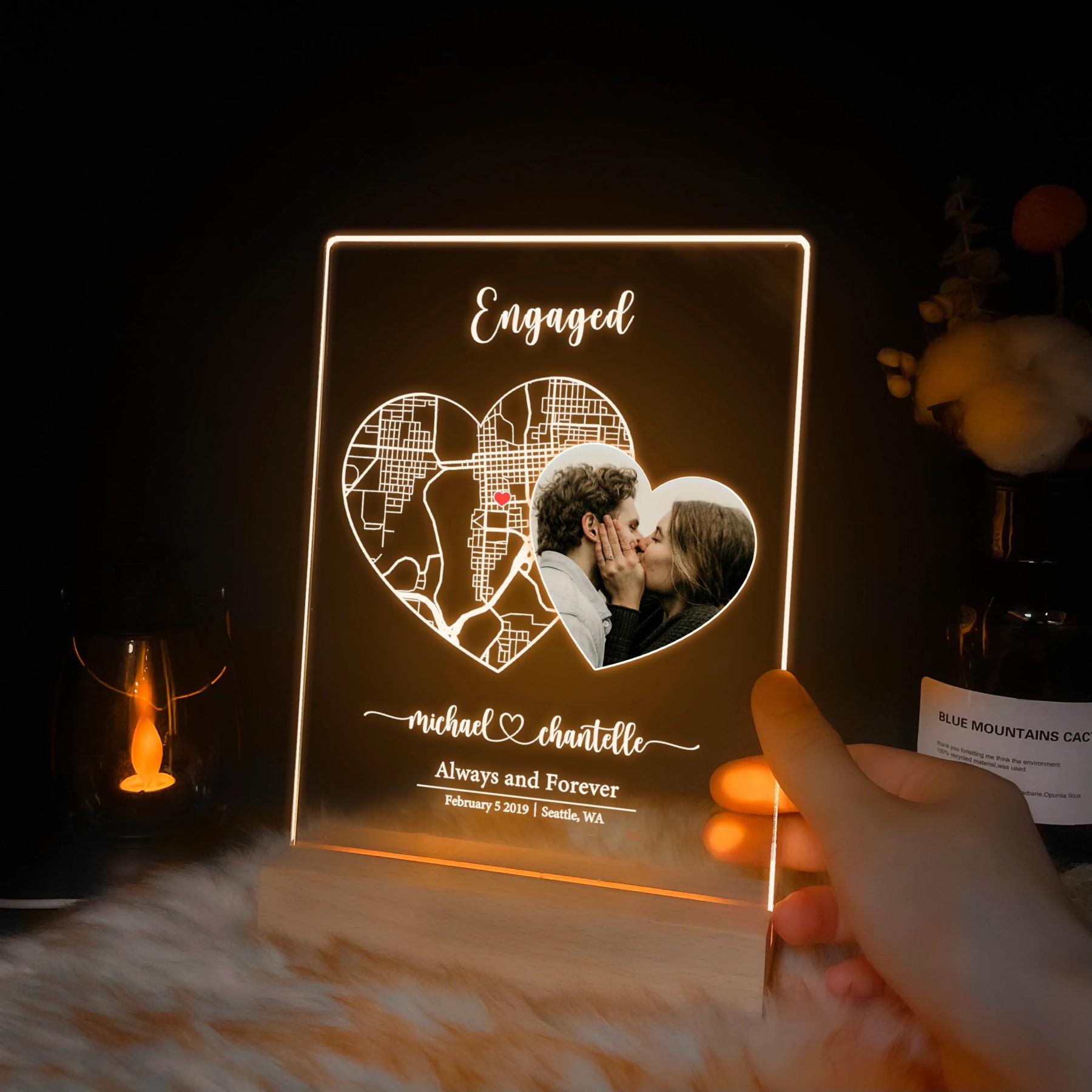 Custom Where She Said Yes Acrylic Map Night Light for Couple