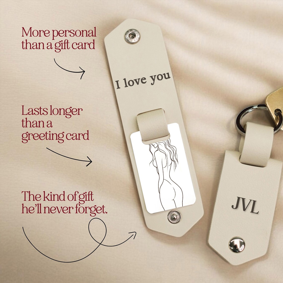 Custom Leather Keychain Set for Couples with Spicy Photo