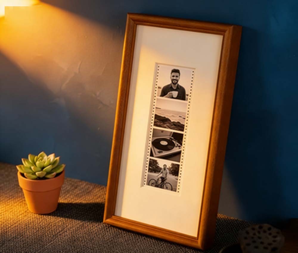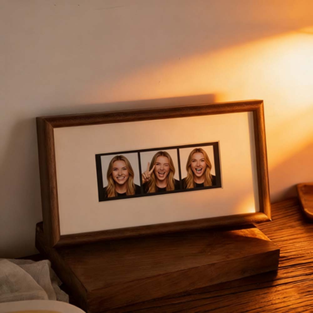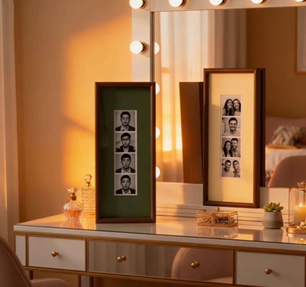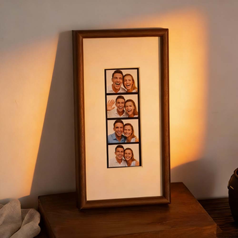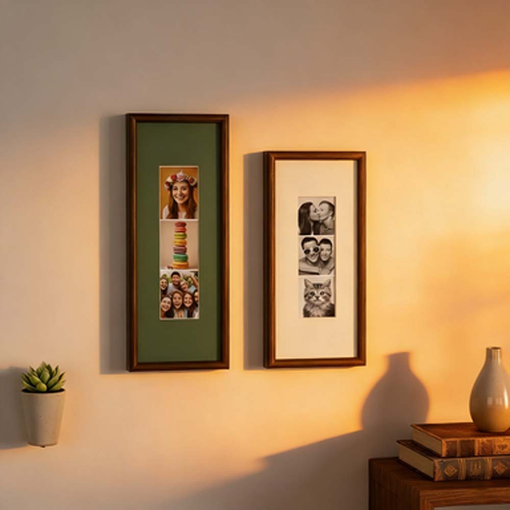 Its slim vertical silhouette naturally draws the eye upward, making it perfect for photobooth prints, Polaroid-style keepsakes, and other small sentimental photographs. The elongated format highlights each image in a clean, balanced way—turning simple photo strips into a refined wall display.
