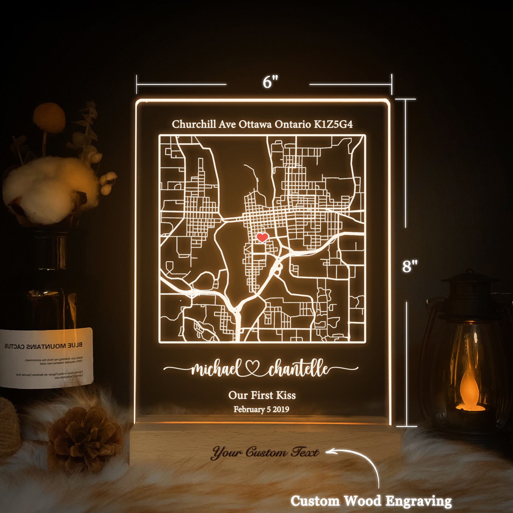 Turn the place where your love story began into a glowing keepsake. This personalized acrylic map night light captures the exact location of your most meaningful moment, whether it’s your first date, engagement, wedding, or any milestone worth remembering. With a warm wooden LED base and crystal clear acrylic, it adds romance and emotion to any room while preserving memories that last forever.