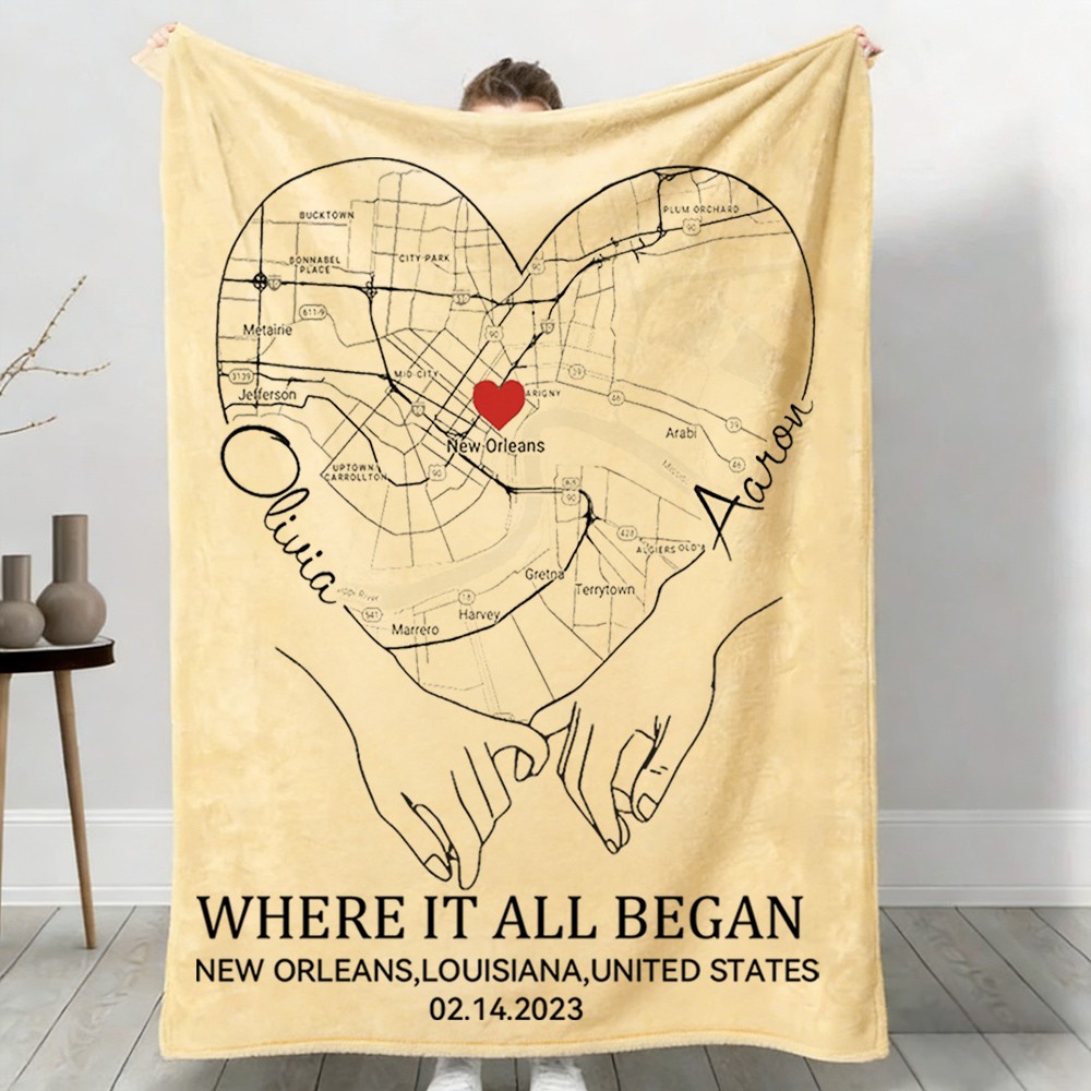 Custom Where It All Began Love City Map Blanket for Couple is a personalized keepsake designed to celebrate the place where your love story began. Customize the blanket with a meaningful city map, coordinates, names, and a special date to create a timeless and heartfelt gift for couples, anniversaries, weddings, or Valentine’s Day.