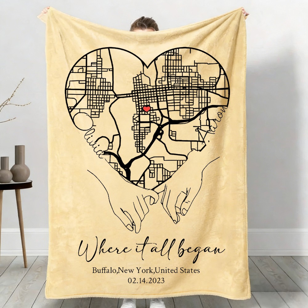 Custom Where It All Began Love City Map Blanket for Couple is a personalized keepsake designed to celebrate the place where your love story began. Customize the blanket with a meaningful city map, coordinates, names, and a special date to create a timeless and heartfelt gift for couples, anniversaries, weddings, or Valentine’s Day.