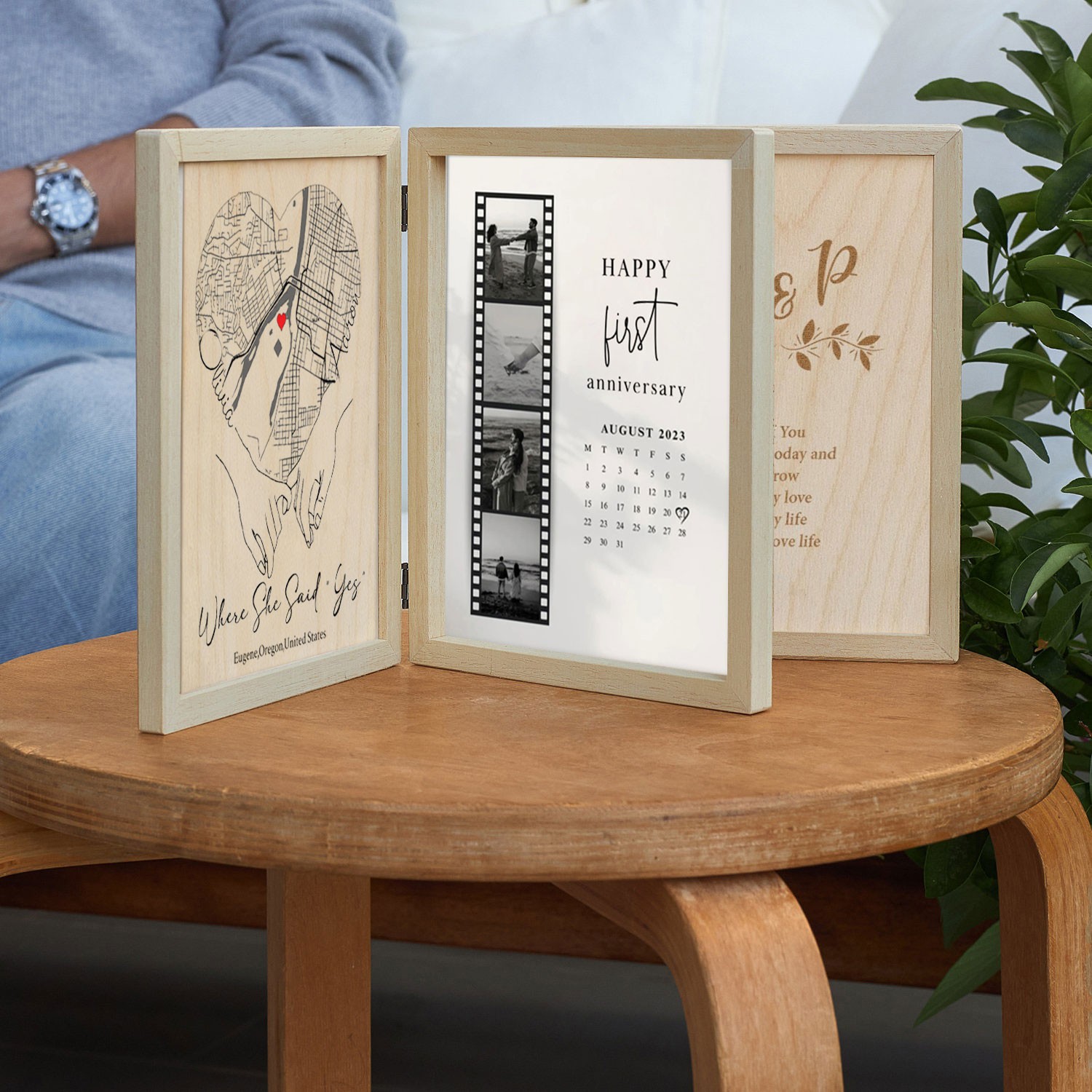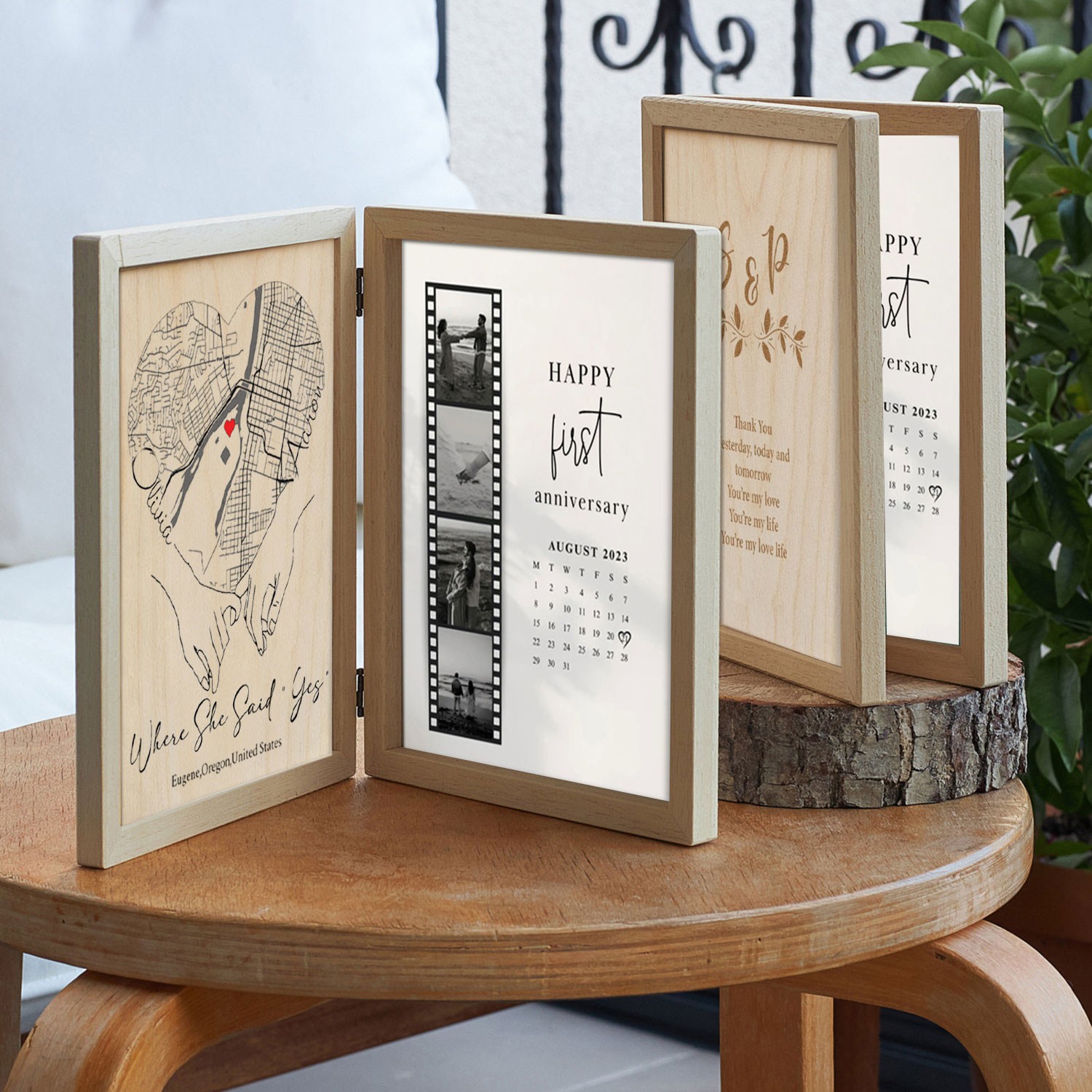 Custom Where She Said Yes Wooden Anniversary Frame Box for Couple