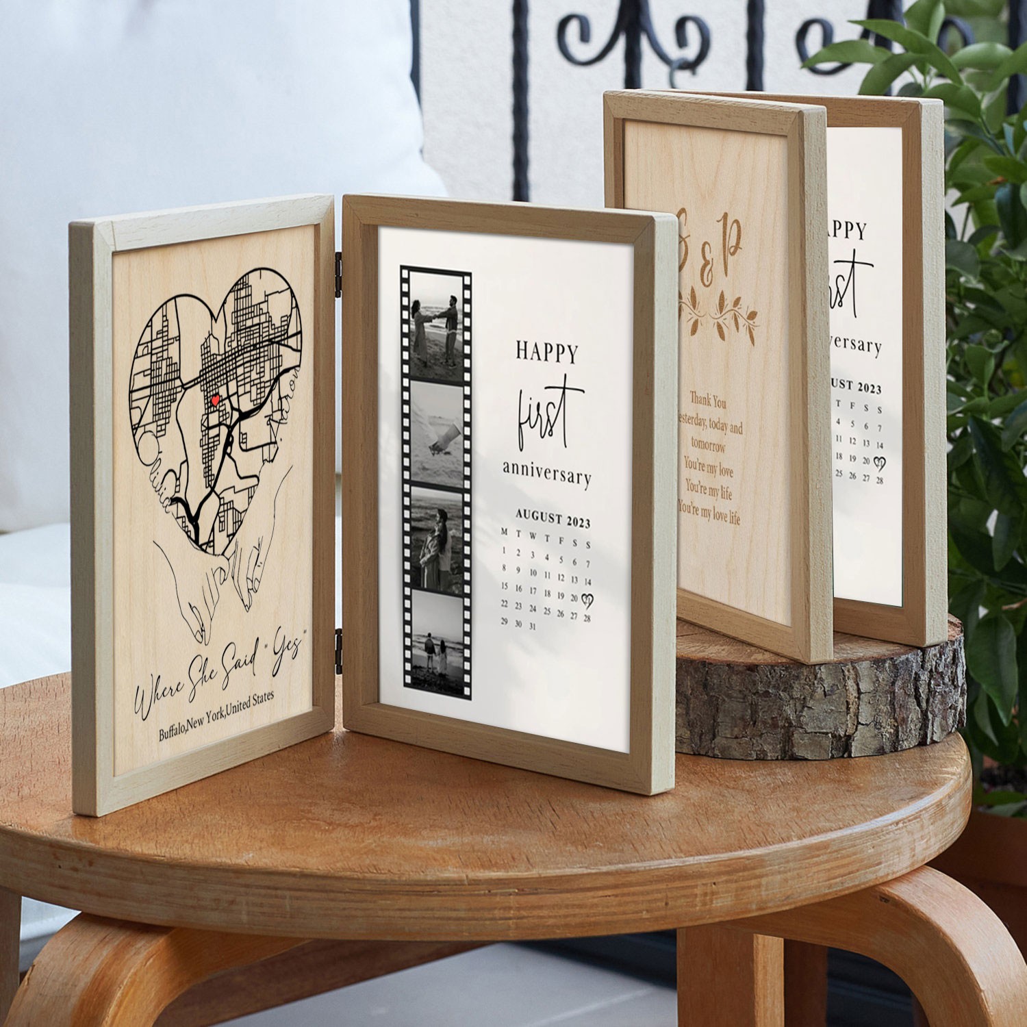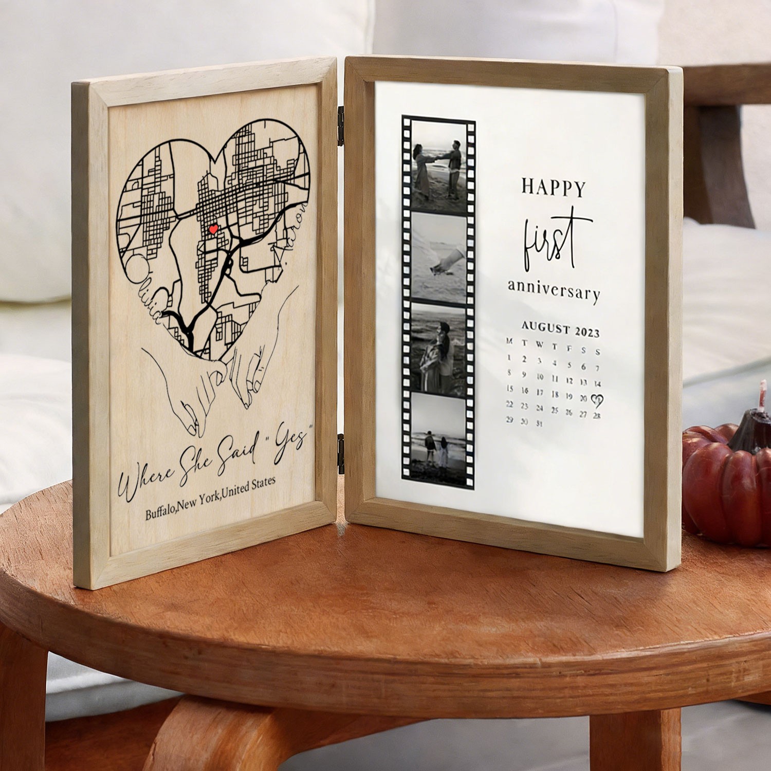 Custom Where She Said Yes Wooden Anniversary Frame Box for Couple