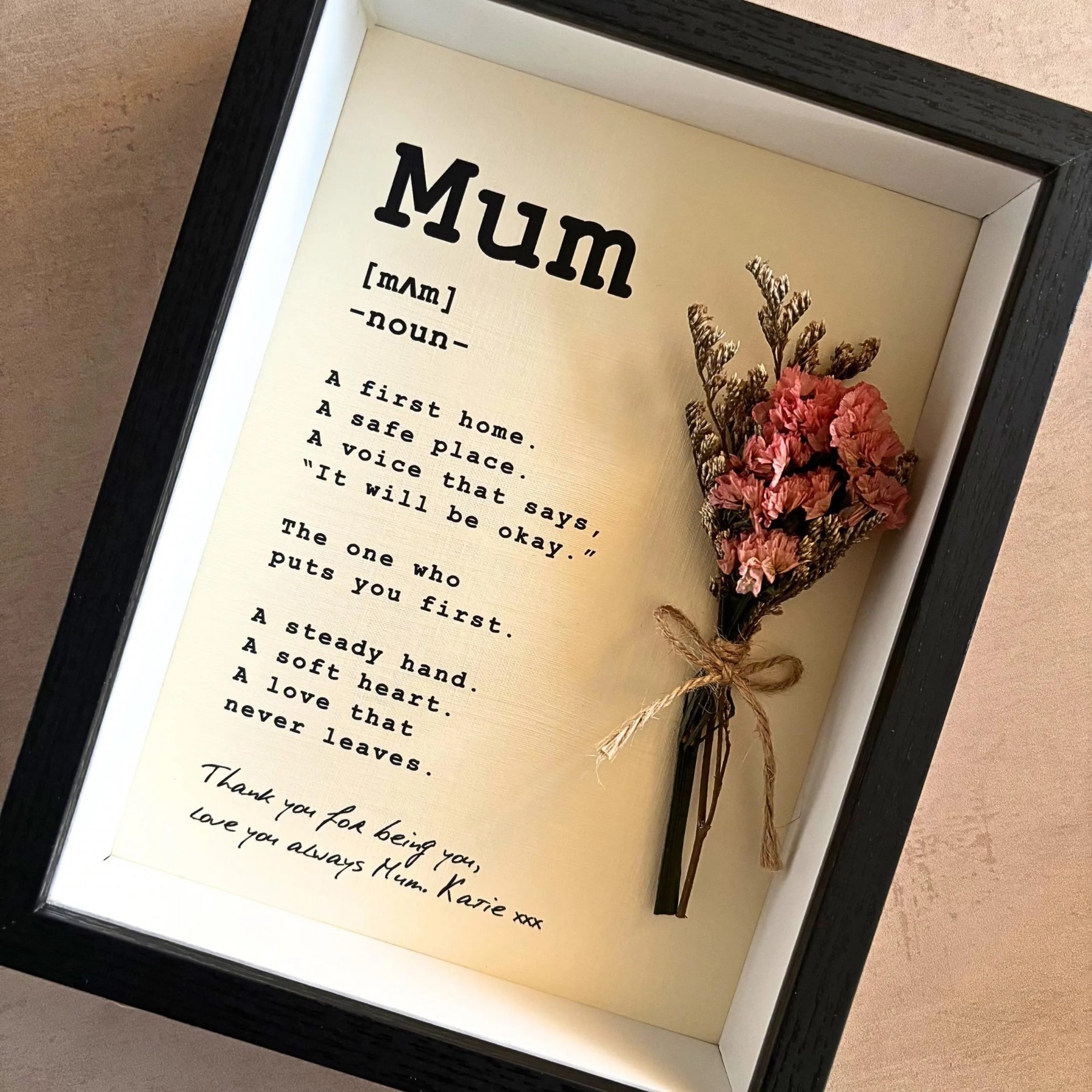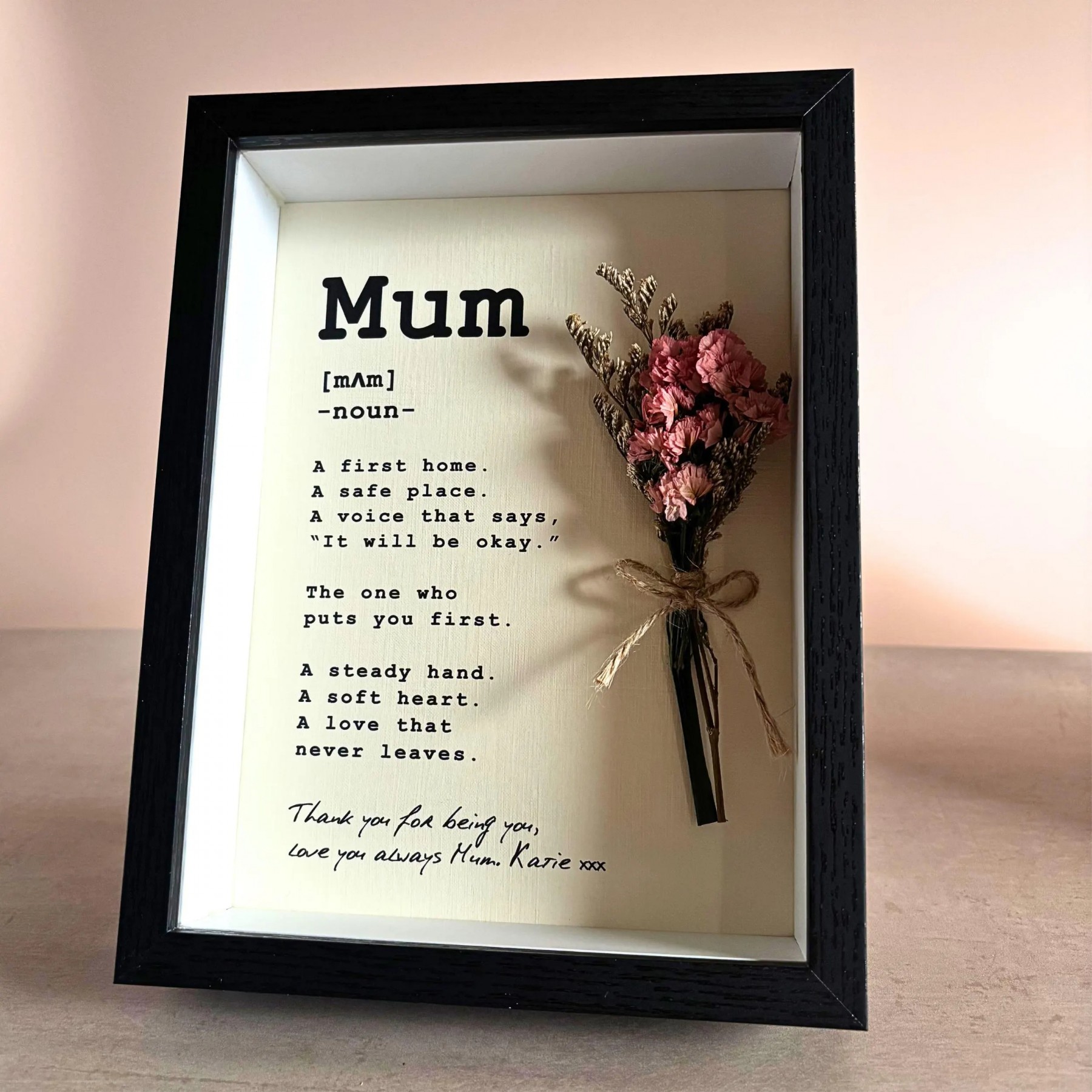 Mother"s Day Engraving Definition Frame Custom Minimalist Style Monochrome Picture Frame Mini Dry Flower Bouquet Gift For Mom