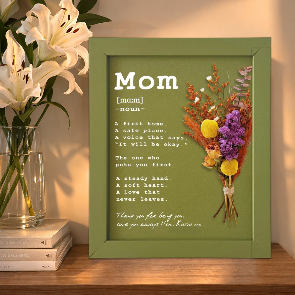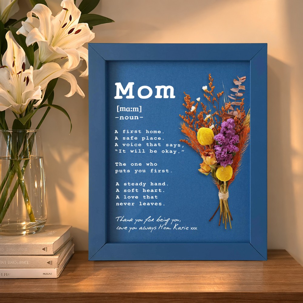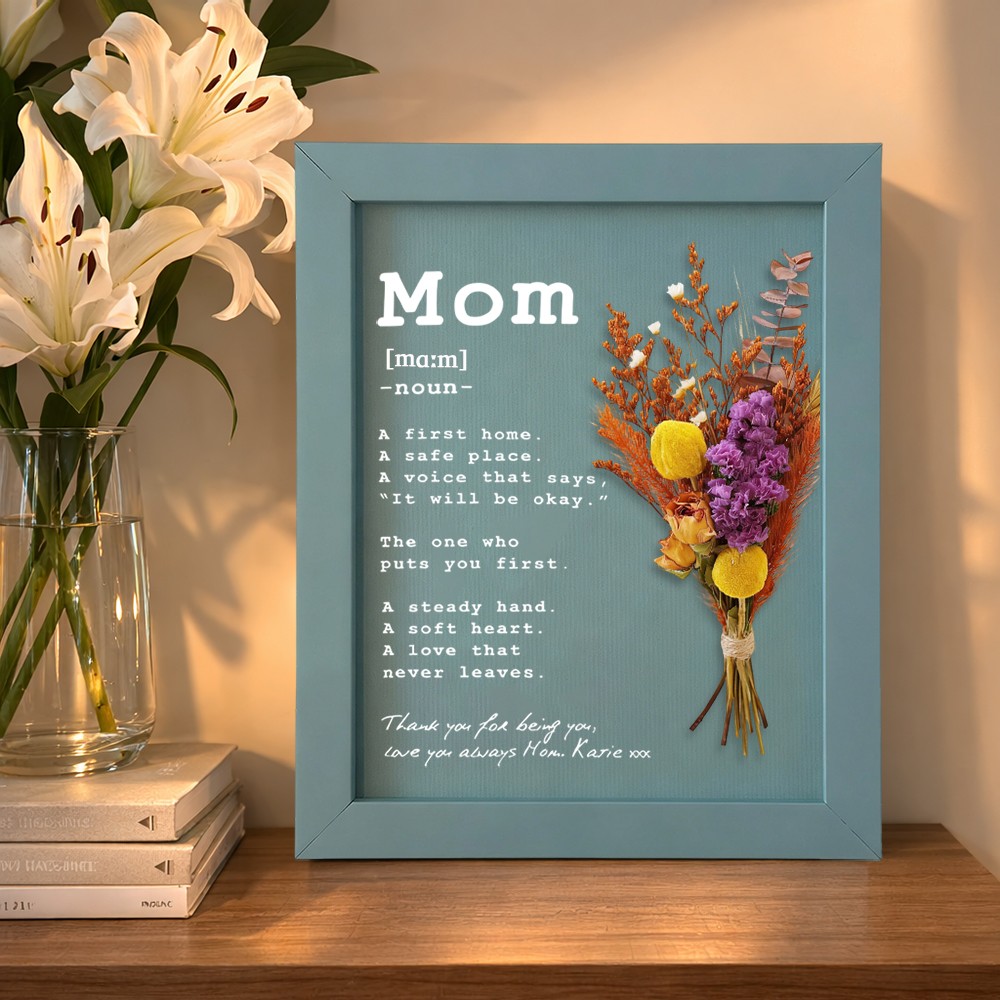 Mother"s Day Engraving Definition Frame Custom Minimalist Style Monochrome Picture Frame Mini Dry Flower Bouquet Gift For Mom