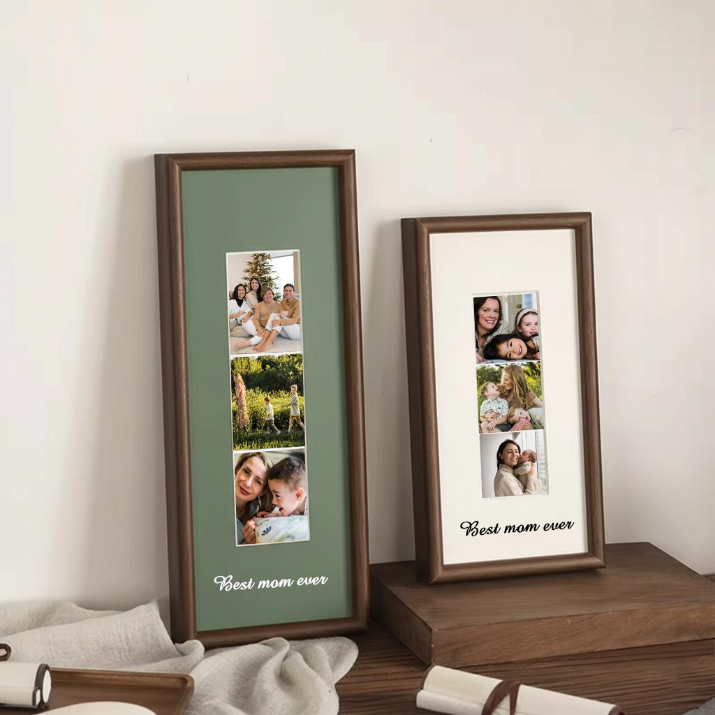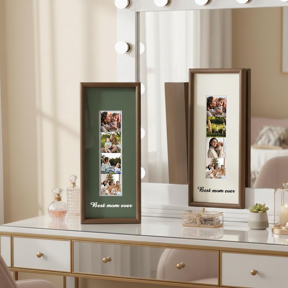Mother's Day Photo Engraving Frame Custom Monochrome Picture Frame Vertical Photo Strip Frame Custom Photobooth Picture Frame Personalized Wall Art Minimal Wooden Frame Gift For Couple Family