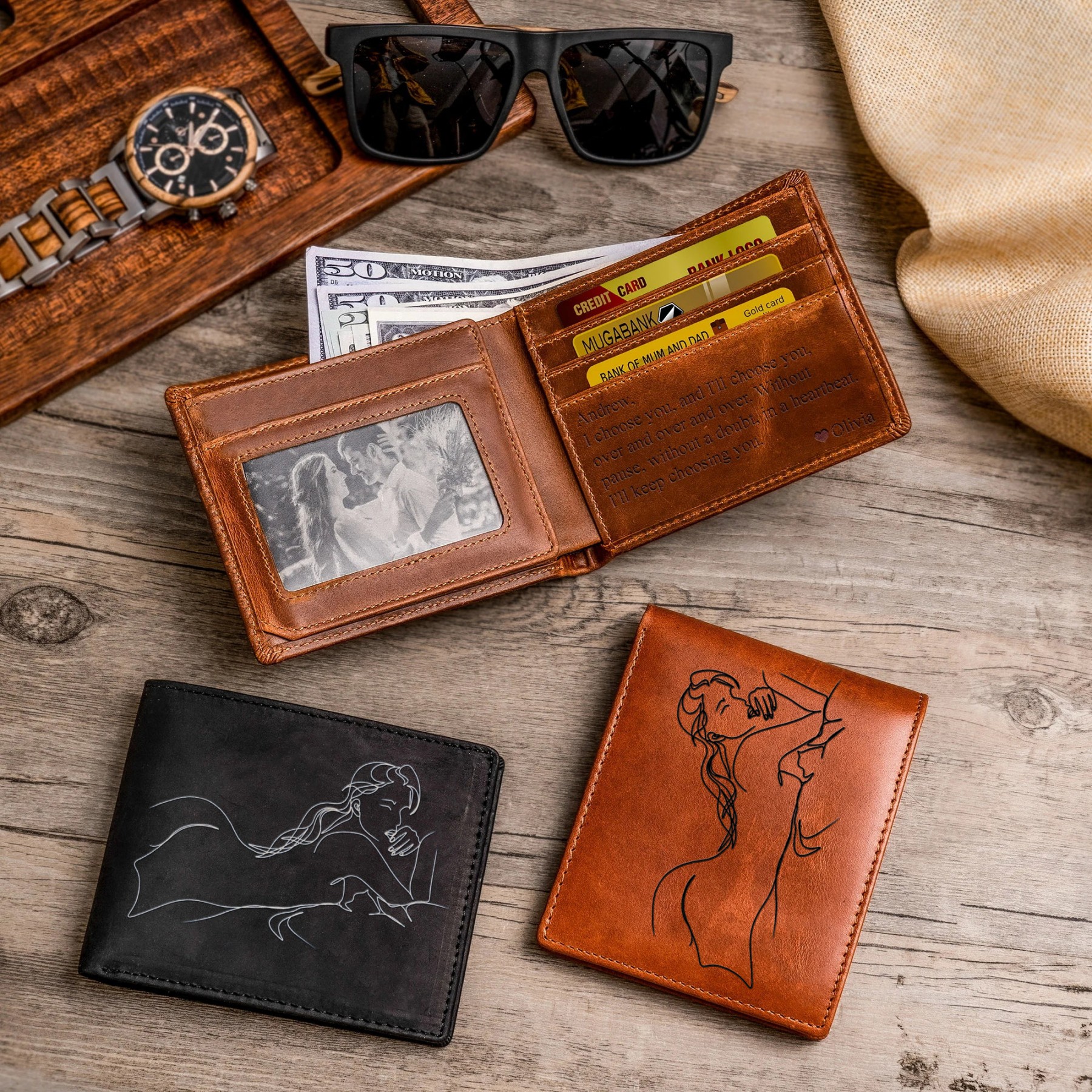 What makes it unique? Fully customizable touches! Add his initials, a meaningful date, custom engraving, or upload a favorite photo to be embroidered on the cover. The handcrafted embroidered photo adds texture and sentiment, turning the wallet into a cherished keepsake.