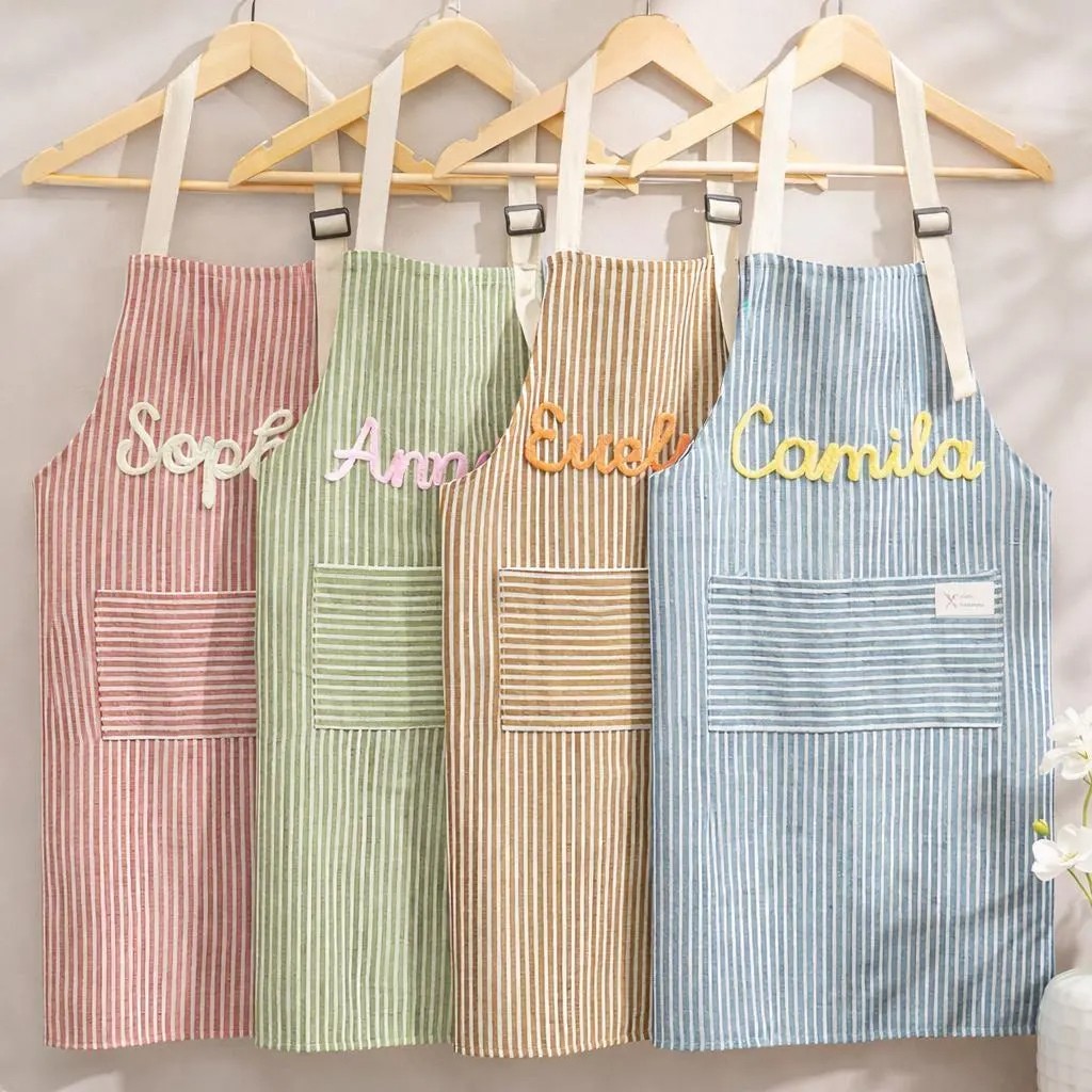Celebrate the joy of cooking with a gift that’s as thoughtful as it is beautiful. This hand-crocheted personalized apron features a fresh vertical stripe design in five carefully selected low-saturation color palettes, blending timeless kitchen charm with modern minimalist style.