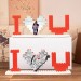 This puzzle consists of pieces that can be assembled to form the letters "I" and "U," along with a heart-shaped piece.  Both sides of the heart-shaped piece can be customized with photos, making it a truly personalized and cherished keepsake.