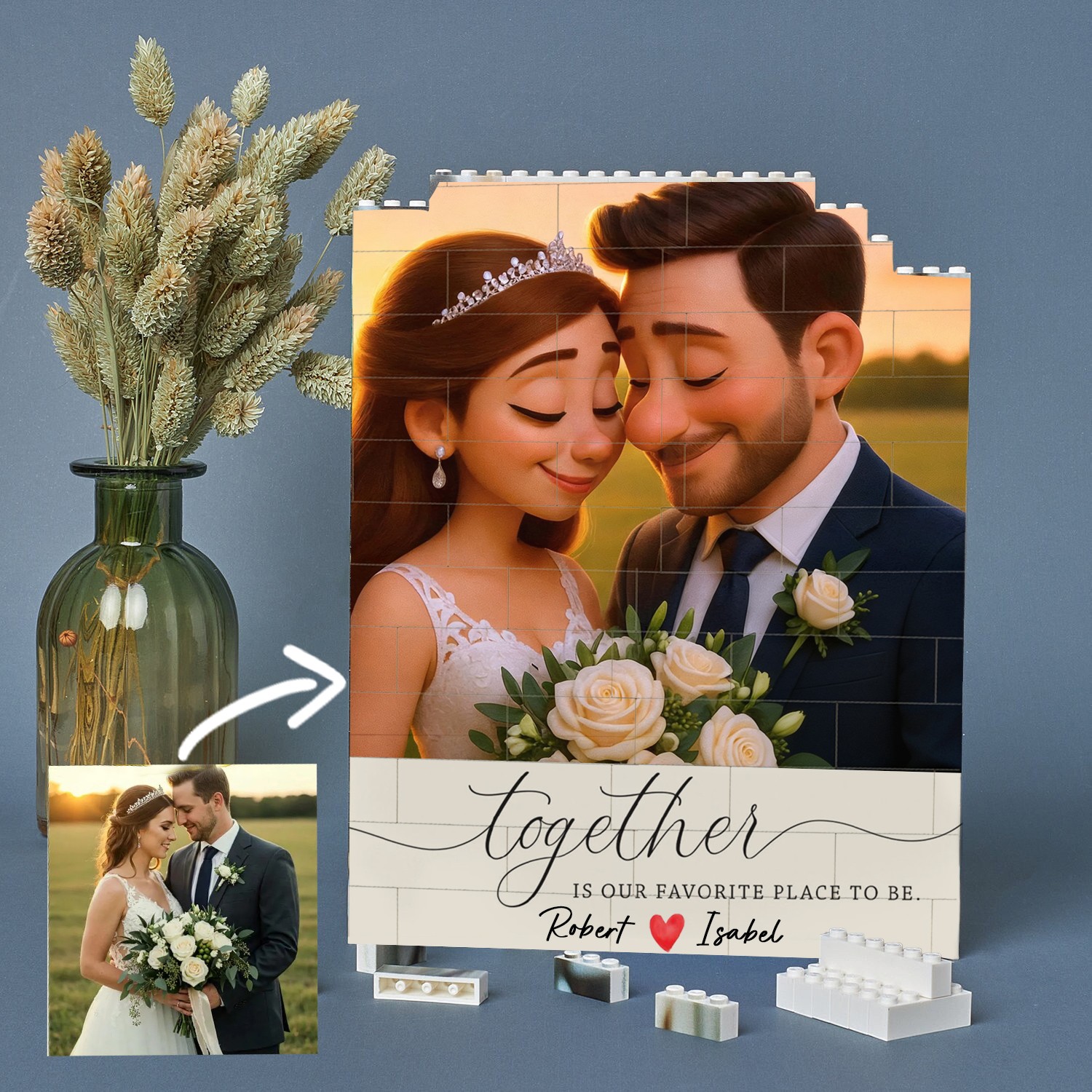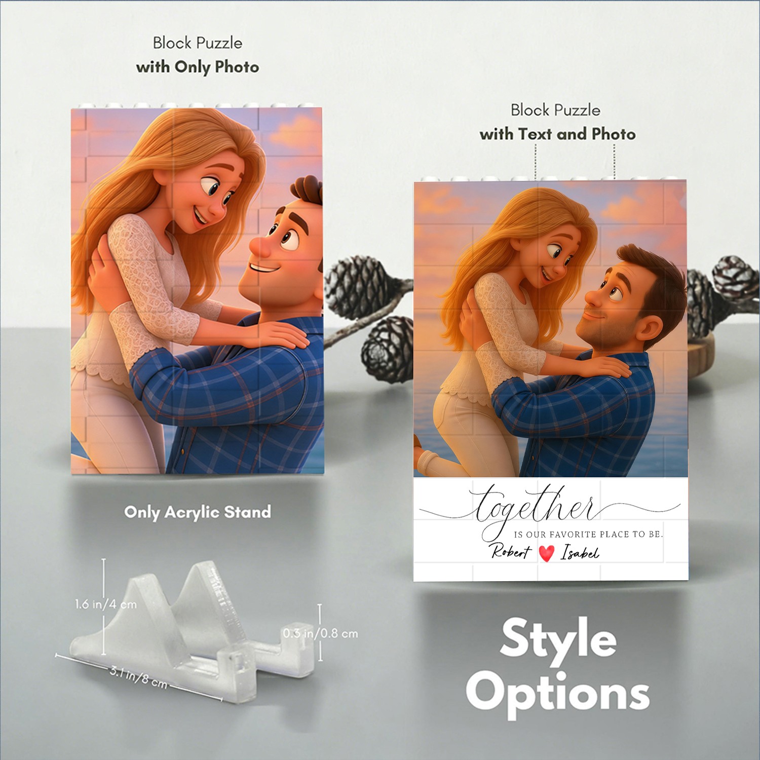 Personalized Together Is Our Favorite Place To Be 3D Cartoon Portrait Puzzle Blocks