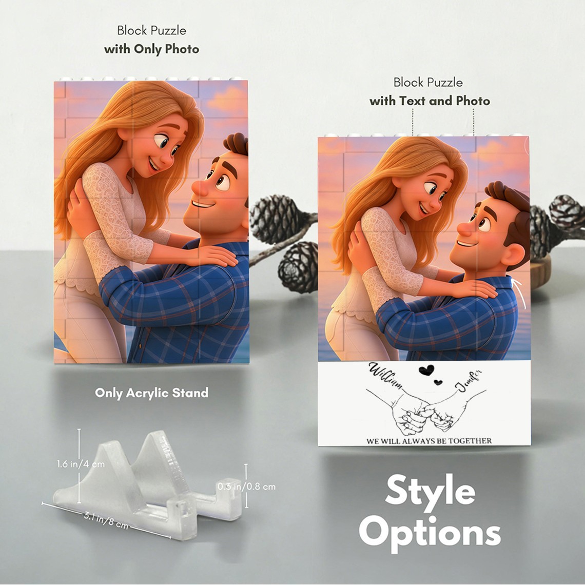 Personalized We Will Always Be Together 3D Cartoon Portrait Puzzle Blocks