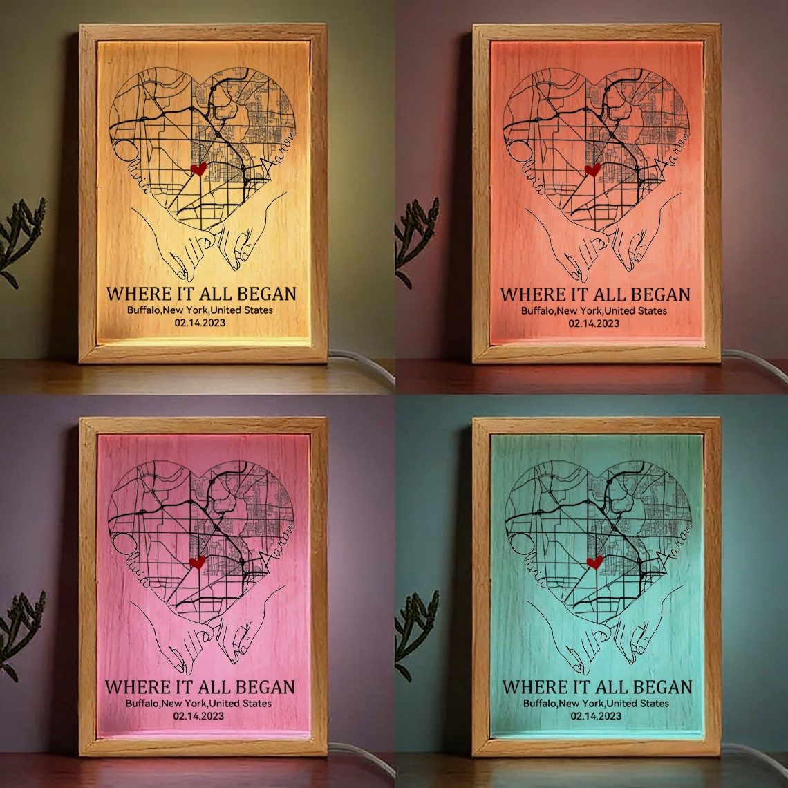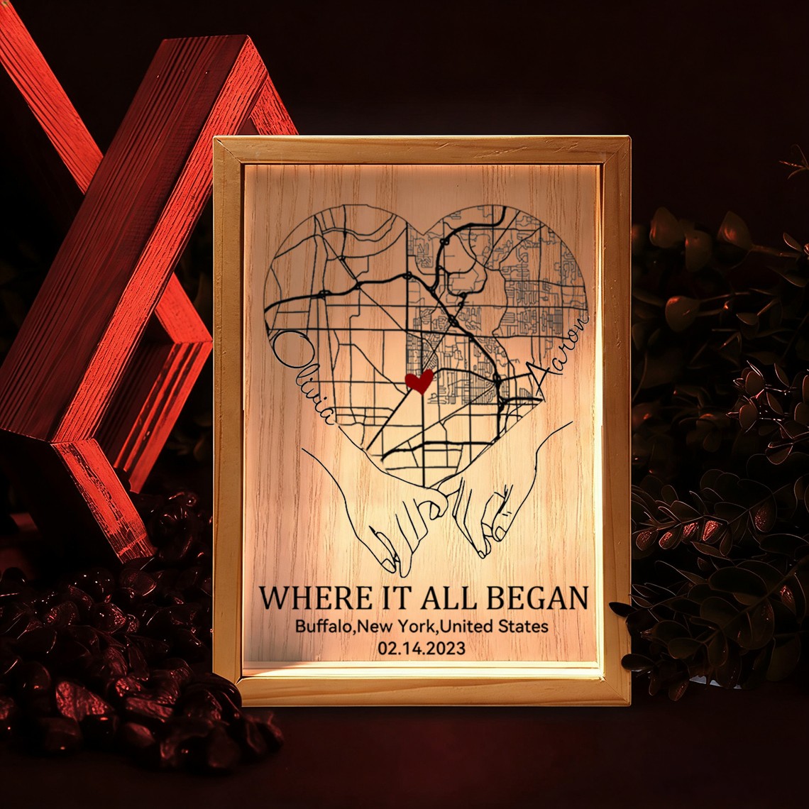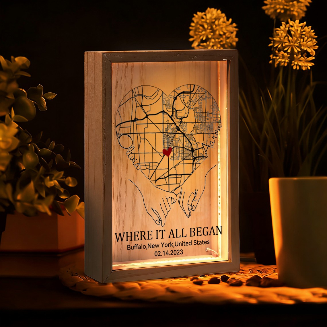 Personalized Where It All Began Map Light Box for Couple