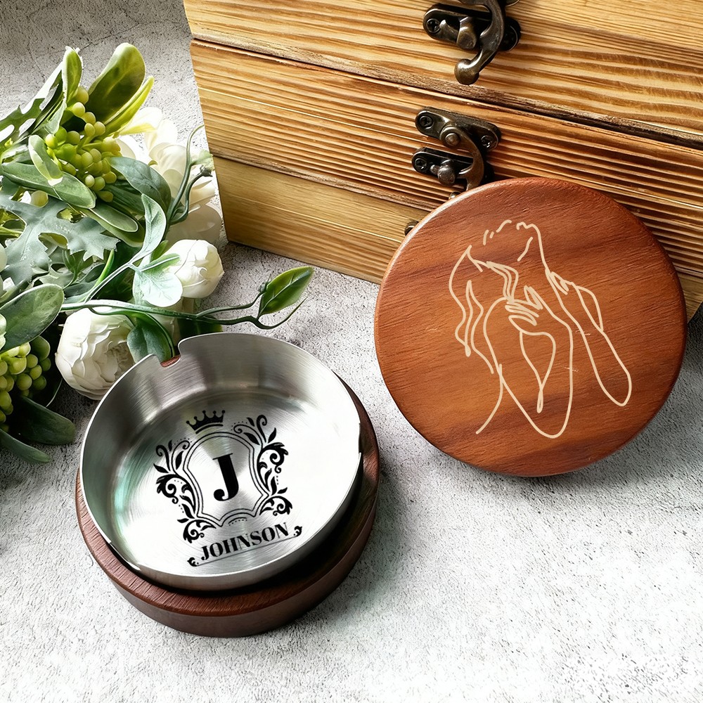 Personalized Wooden Vintage Ashtray With Spicy Portrait Gift For Valentine's Day