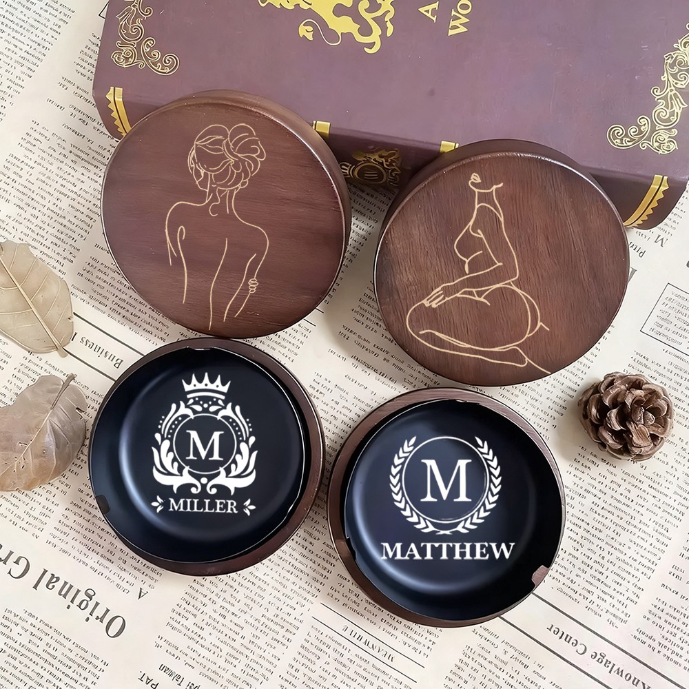 Personalized Wooden Vintage Ashtray With Spicy Portrait Gift For Valentine's Day