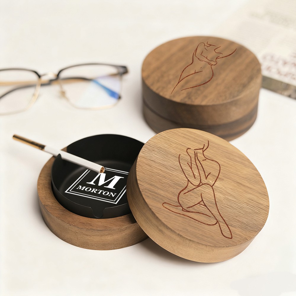 Personalized Wooden Vintage Ashtray With Spicy Portrait Gift For Valentine's Day