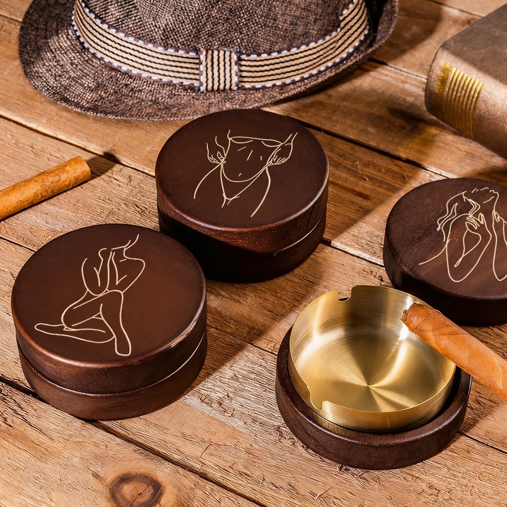 Personalized Wooden Vintage Ashtray With Spicy Portrait Gift For Valentine's Day