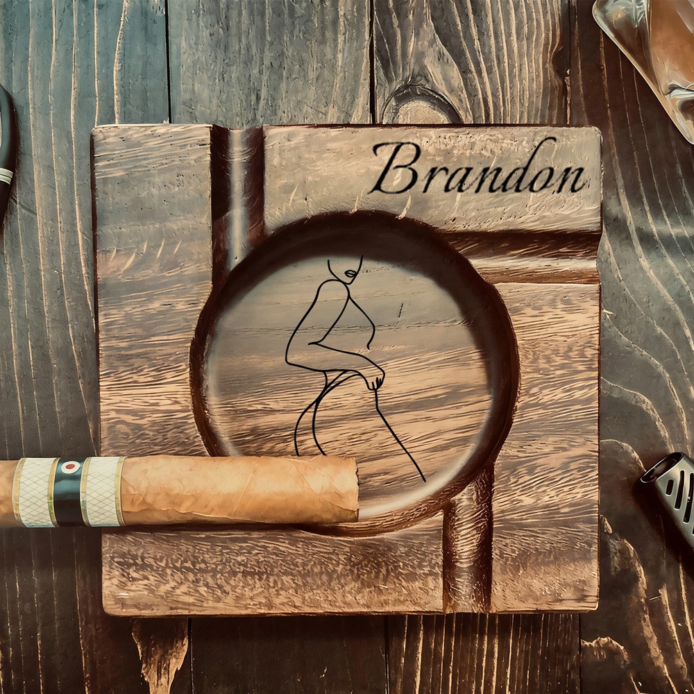 Personalized Wooden Vintage Ashtray With Spicy Portrait Gift For Valentine's Day
