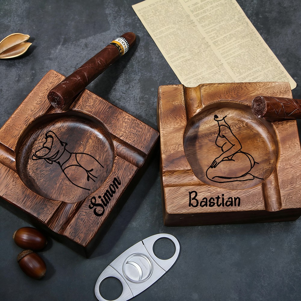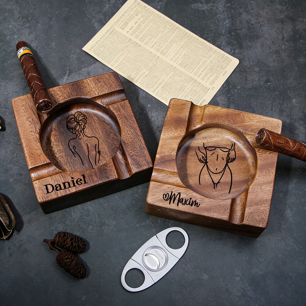 Personalized Wooden Vintage Ashtray With Spicy Portrait Gift For Valentine's Day